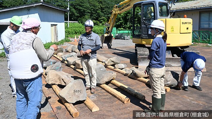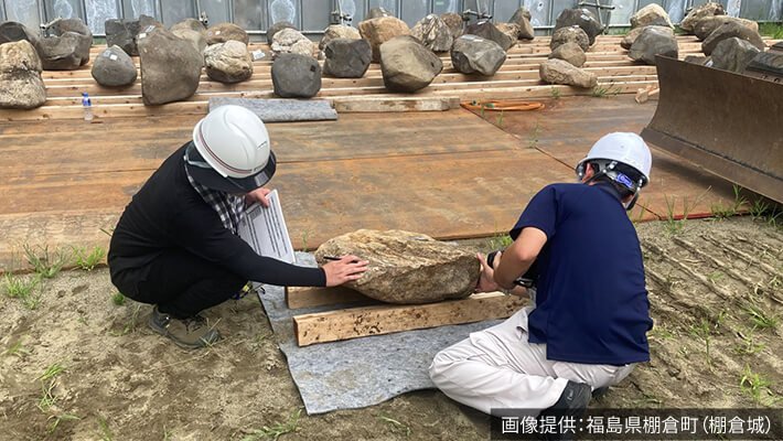 伝統技術と最新技術を組み合わせた石垣の修復作業