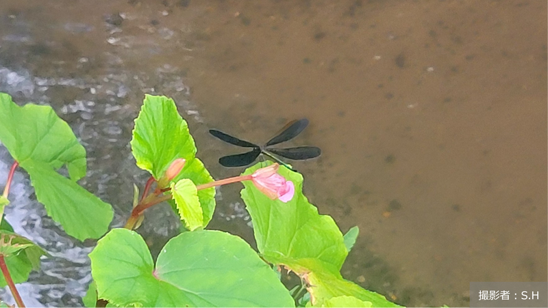 ハグロトンボは清流を好み、川と周辺の緑地が近い環境でしか生きられないため、